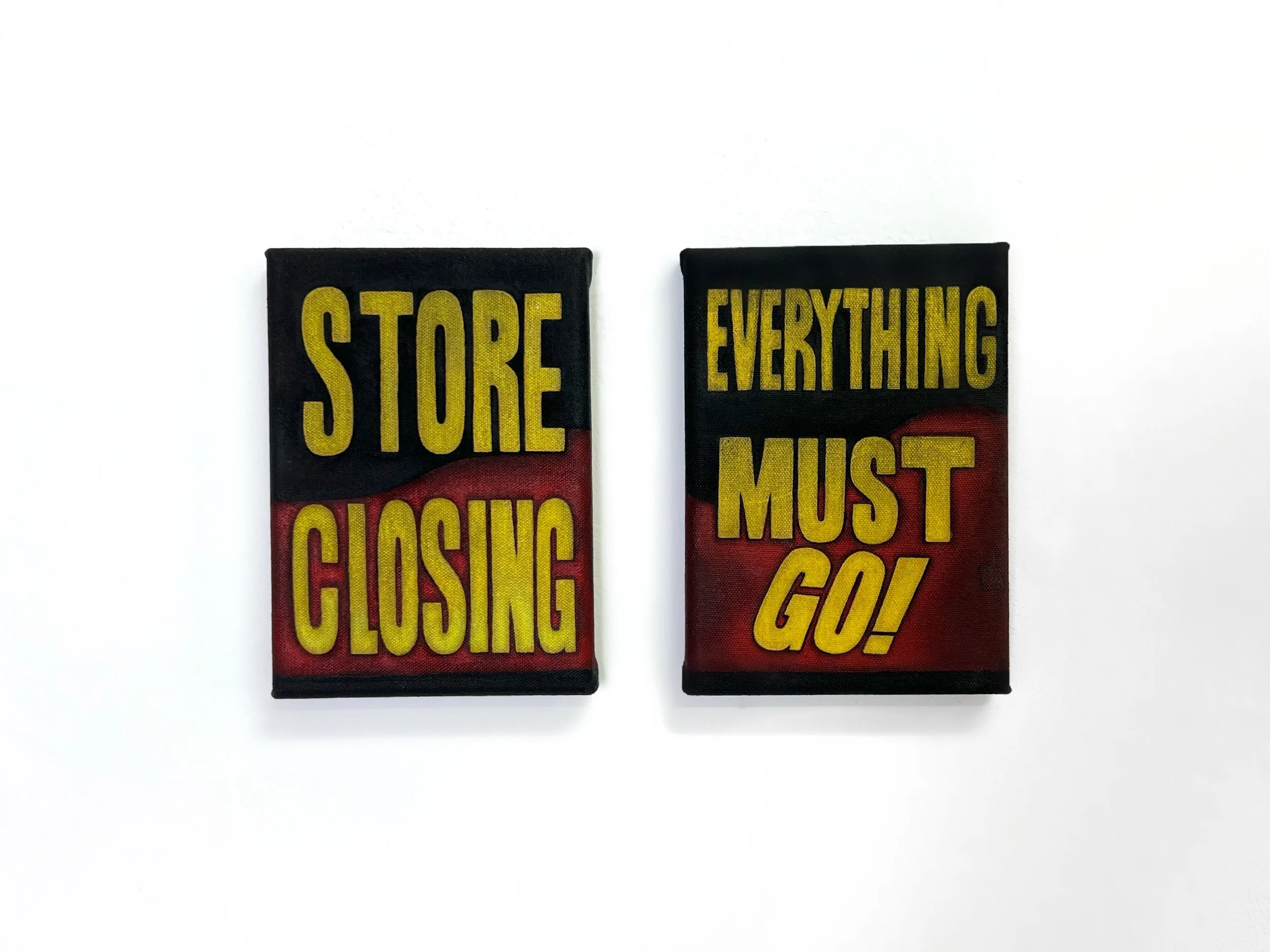 STORE CLOSING, EVERYTHING MUST GO!, 5” x 7” each acrylic on canvas